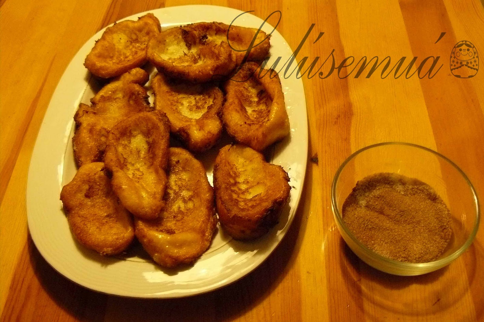 Hoy viernes, recetita fácil para hacer el fin de semana.  Si les pregunto a mis hijos qué postre quieren, sin ninguna duda me dirán tostadas de pan... ¡les encantan!.